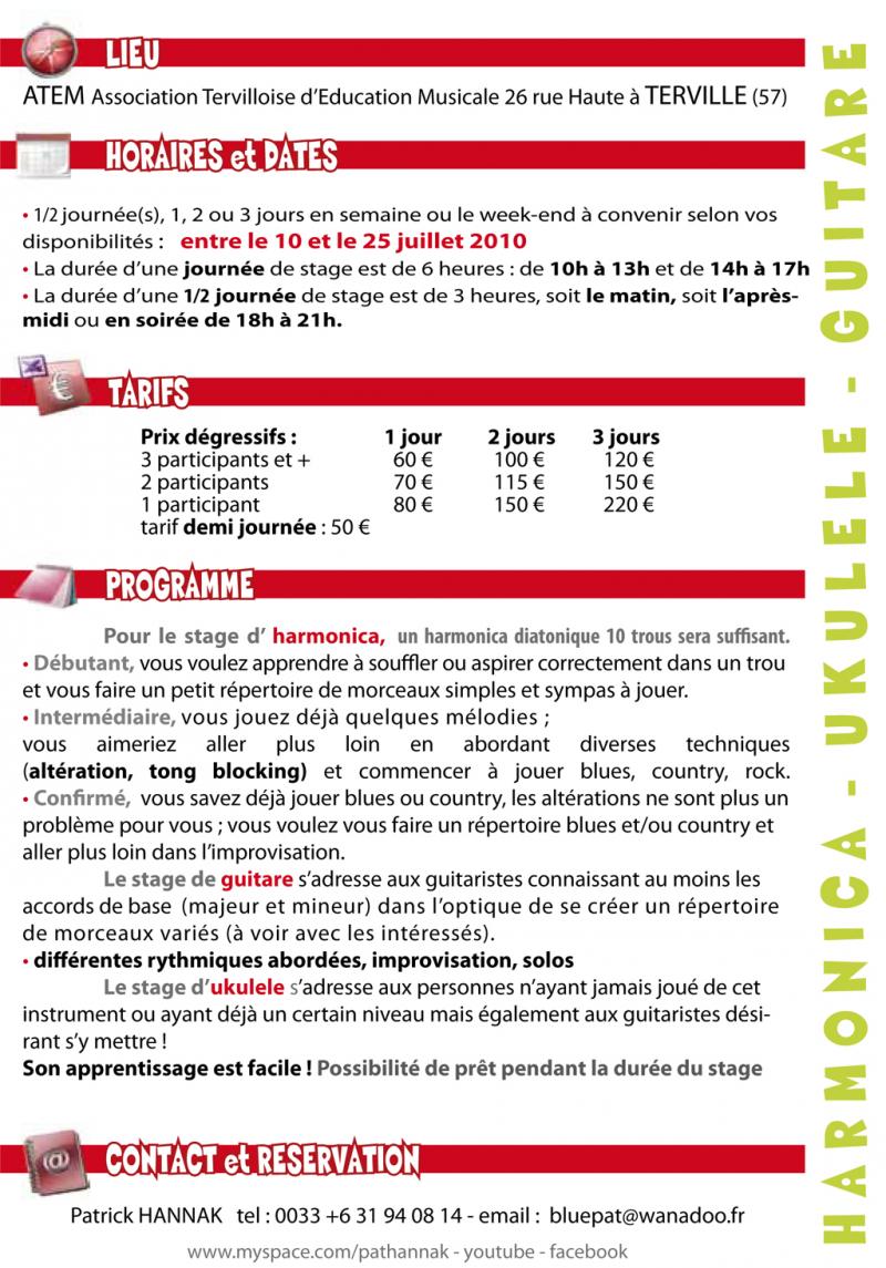 Voilà une formule de stage inédite proposée par Patrick Hannak, qui fût l'un des professeurs qui ont participé à la renommée du stage de Rock & Blues du château de Monteton (les connaisseurs apprécieront).