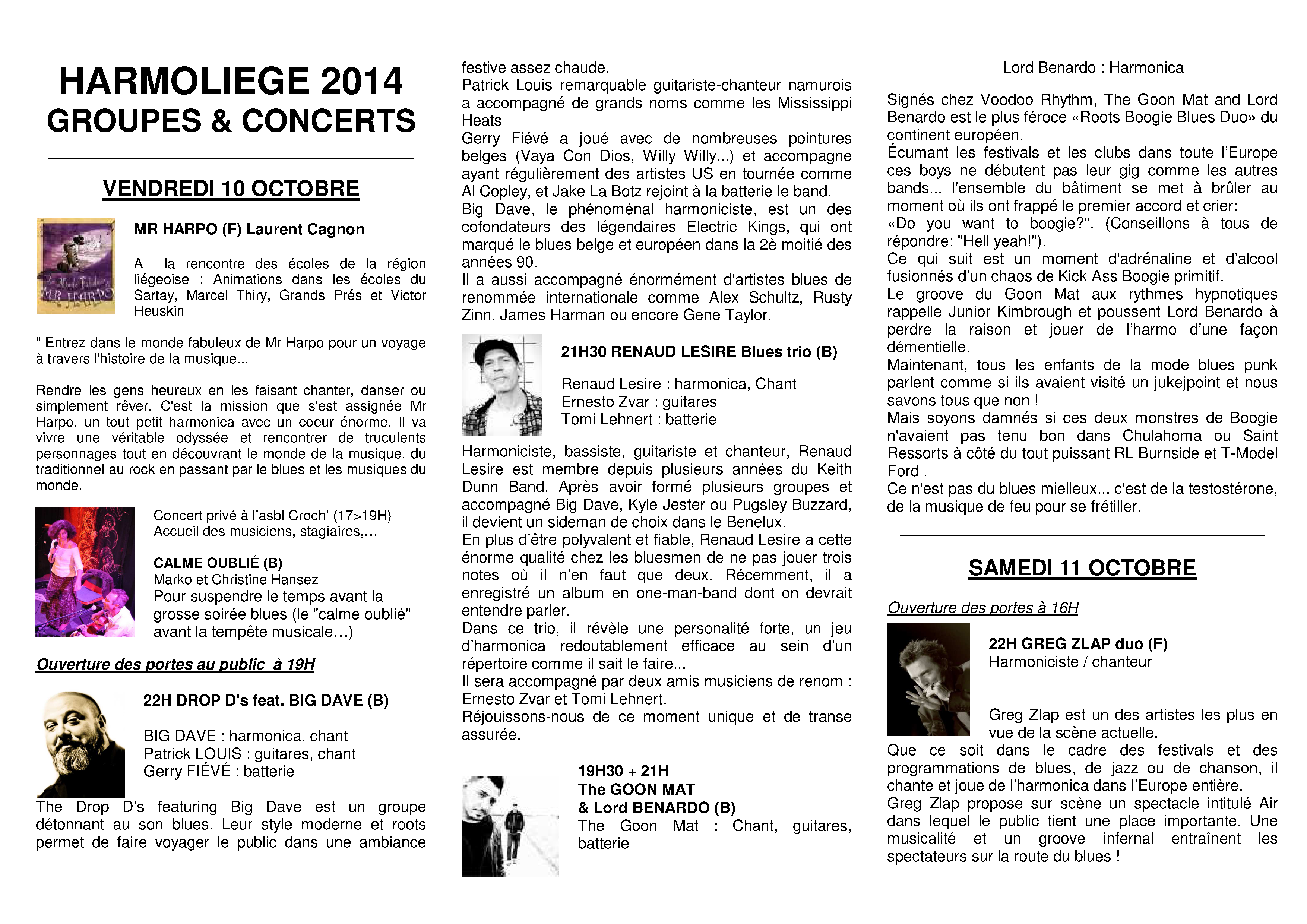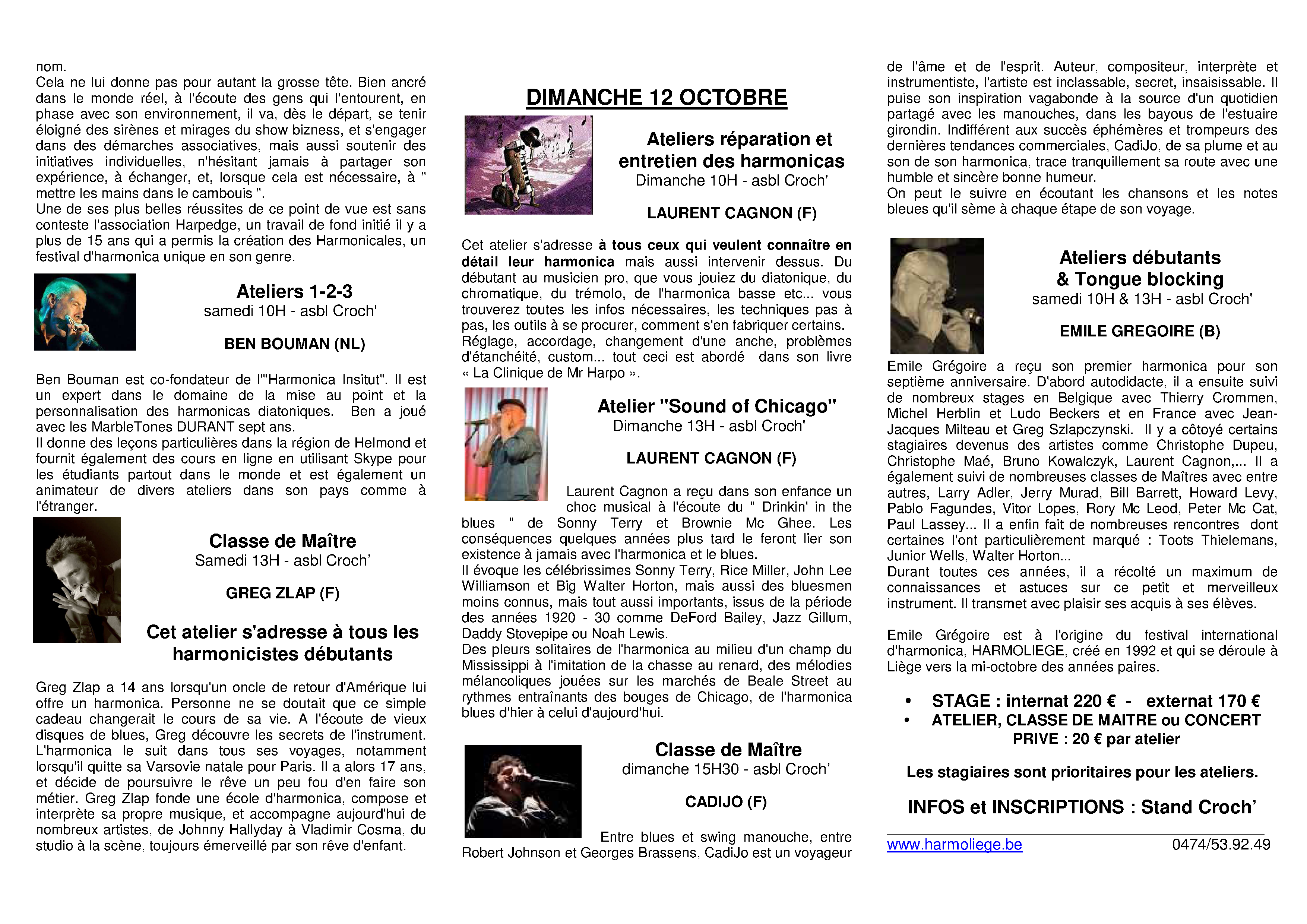 L'article vient un peu tard, mais vu les facilités de transports jusqu'à Liège et à Liège même, ainsi que le riche choix d'hôtels à tous les prix... Il est encore temps de te lancer, ami musicien et amateur d'harmonicas ! Prends-toi en main, et ne loupe pas un tel événement...